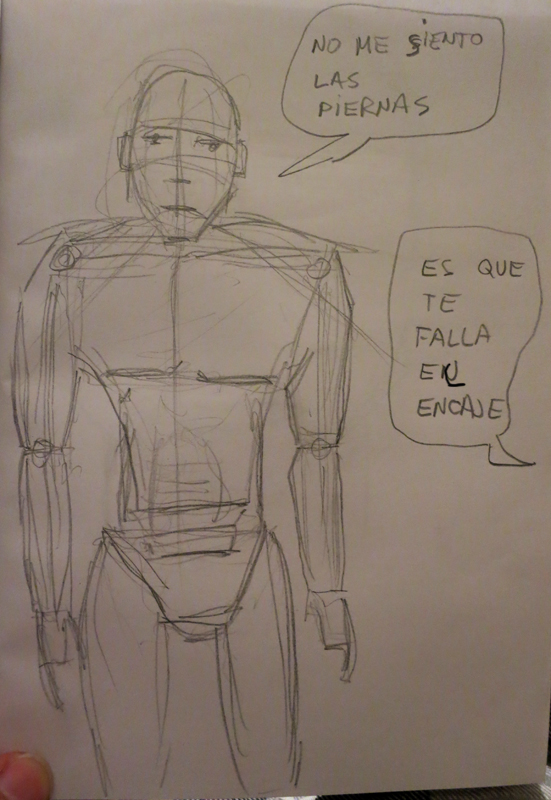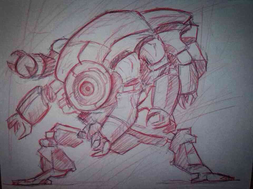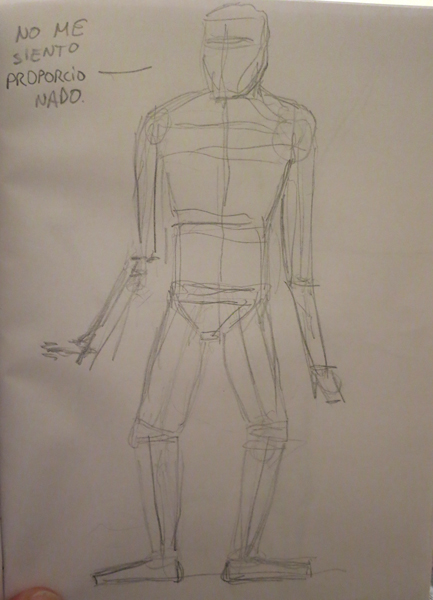 Aquí mi boceto articulado, aunque he decidido hacer un dibujo de cosecha propia que este es fijándome en la siguiente imagen, aunque sé que me va a salir un churro porque cuando intento dibujar algo sin referencia no me sale bien la perspectiva y me queda aplanado.