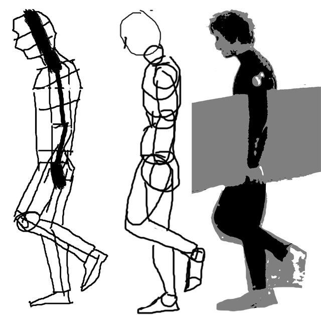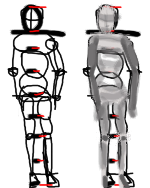 Me alegro de que esto se mueva. Molan los bocetos, prometen. Fighter, para que se note mejor la perspectiva, exagera las diferencias de tamaños entre lo que está cerca, y lo que está lejos. En tu dibujo, todas las bolas de las articulaciones son prácticamente iguales, exageralas. A ver si te sirve (que yo soy muy manco).