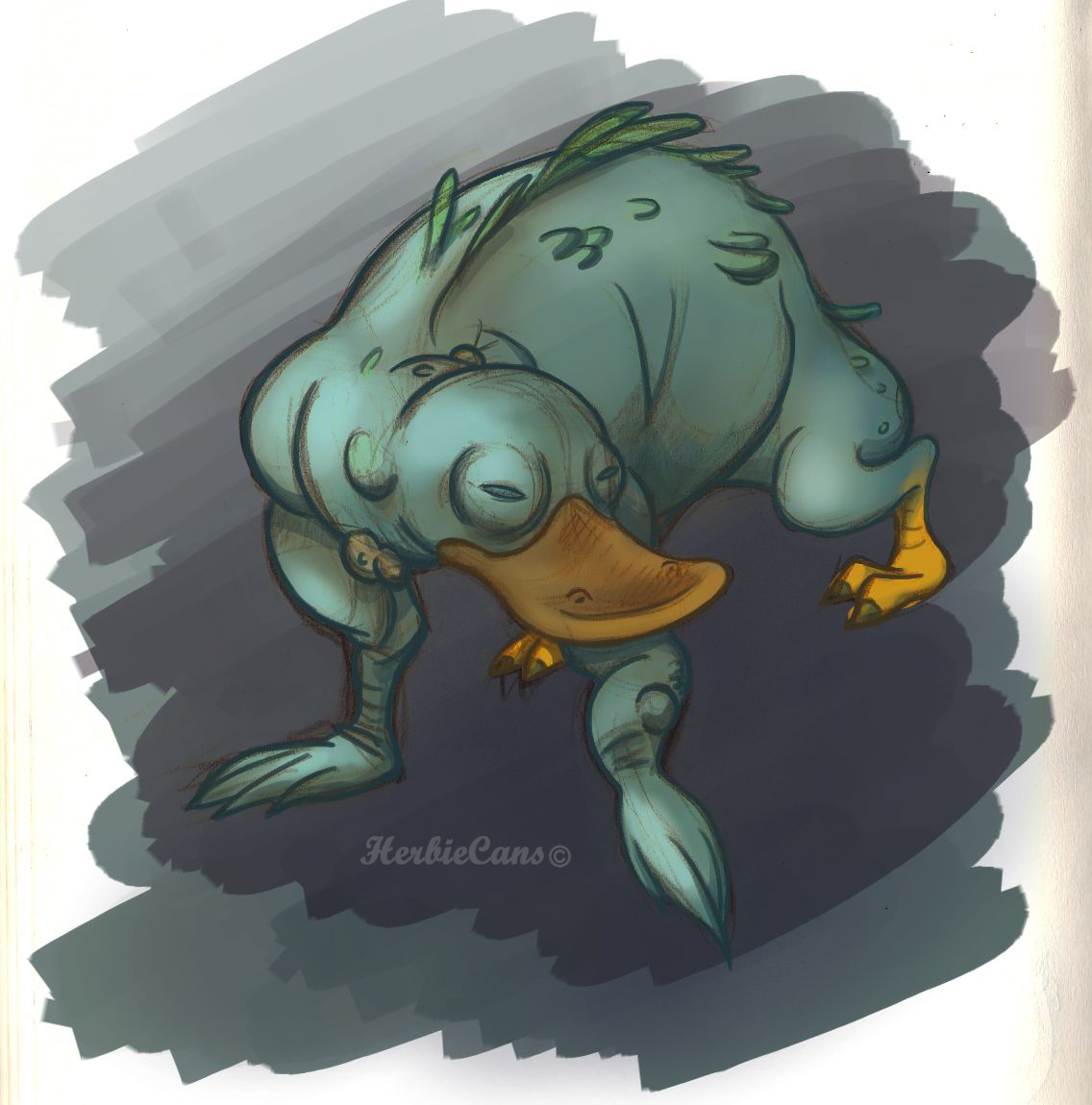 Kouprey tienes toda la razón, hace falta salir de la zona de confort, aunque me temo que incluso haciéndolo mis dibujos tienen una pestecilla similar, vamos que, el trazo me delata me parece, siempre redondeado, amable, no veo dureza ni queda tétrico, por mucha ciénaga qué sea no sé, no te parece? El ornitorrinco mismo, no tiene un muy de fiera chunga sino que conserva un mod abrazable, me parece que voy a tener que trabajar más, aunque bueno, aquí pongo la primera mancha estoy intentando colorear con más saturación.