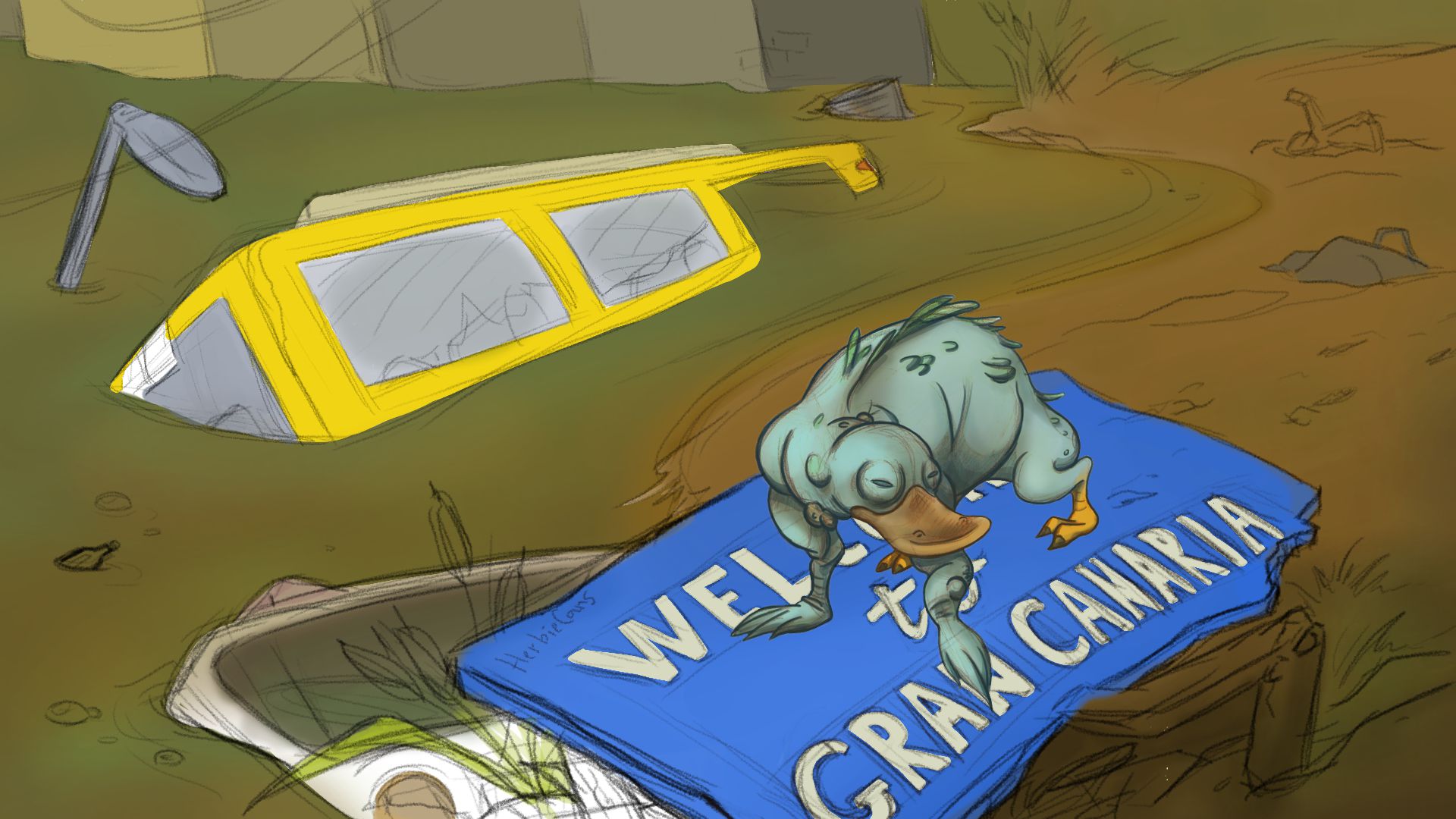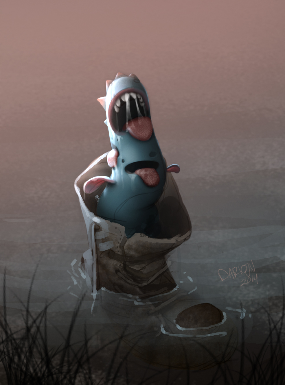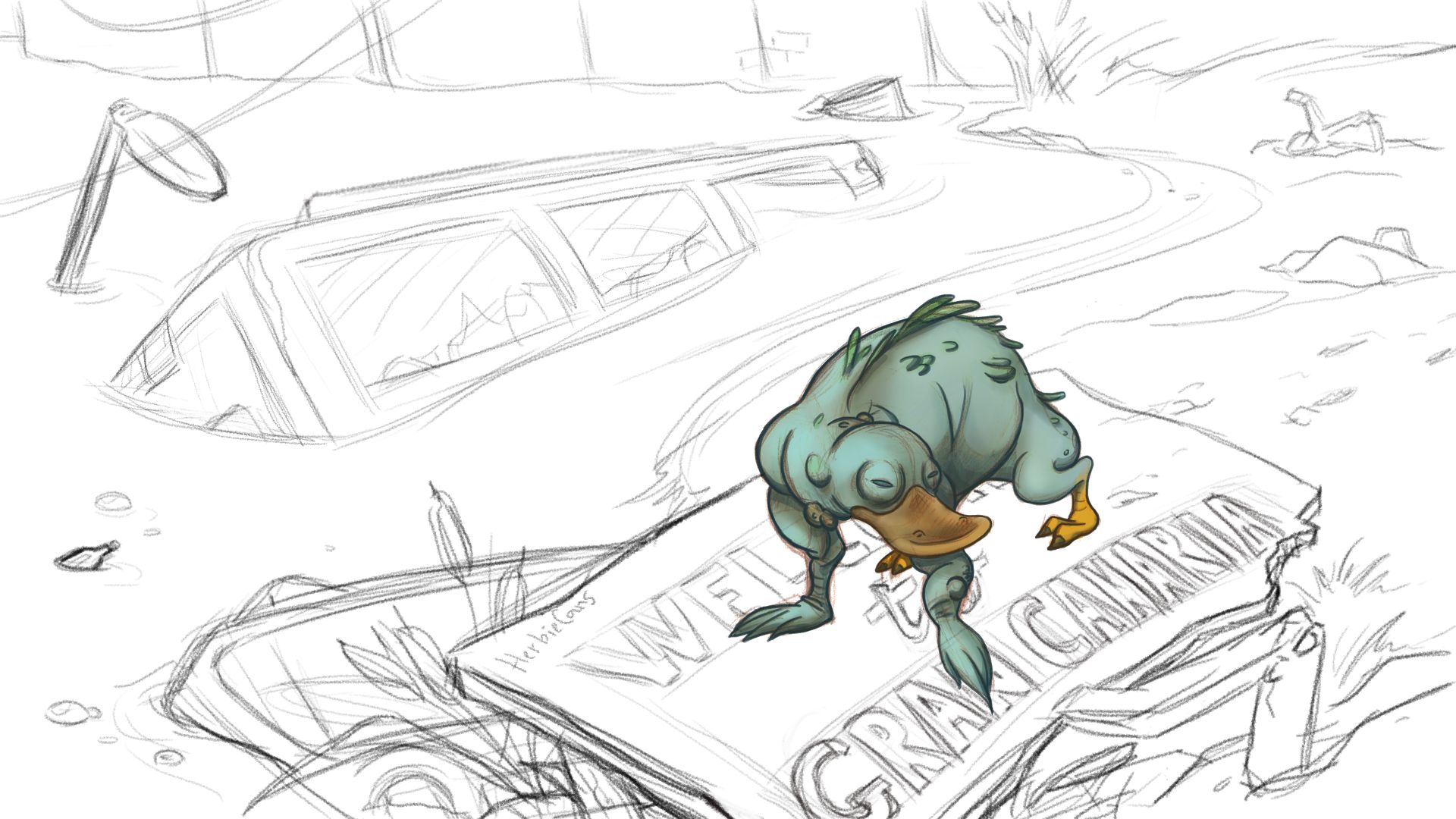 Genial ciberspace, entre más seamos mejor. Y me gusta tu concepto de ballena/pulpo, es muy original. Ahora, la cara de malo que tiene el de Kouprey es demasiado Te he hecho caso Kouprey, necesito practicar fondos y quiero aprovechar esto para hacer un ejercicio de iluminación y de paso para él portafolio si queda gua, y, he hecho un boceto del fondo para él pato/ornitorrinco mutante. Ja lo que me he reído haciendo el cartel Sugerencias? Ideas de cosas que puedan estar flotando en el agua, sobre saliendo del barro o extras? Me gustaría meterle mano está tarde después del trabajo.