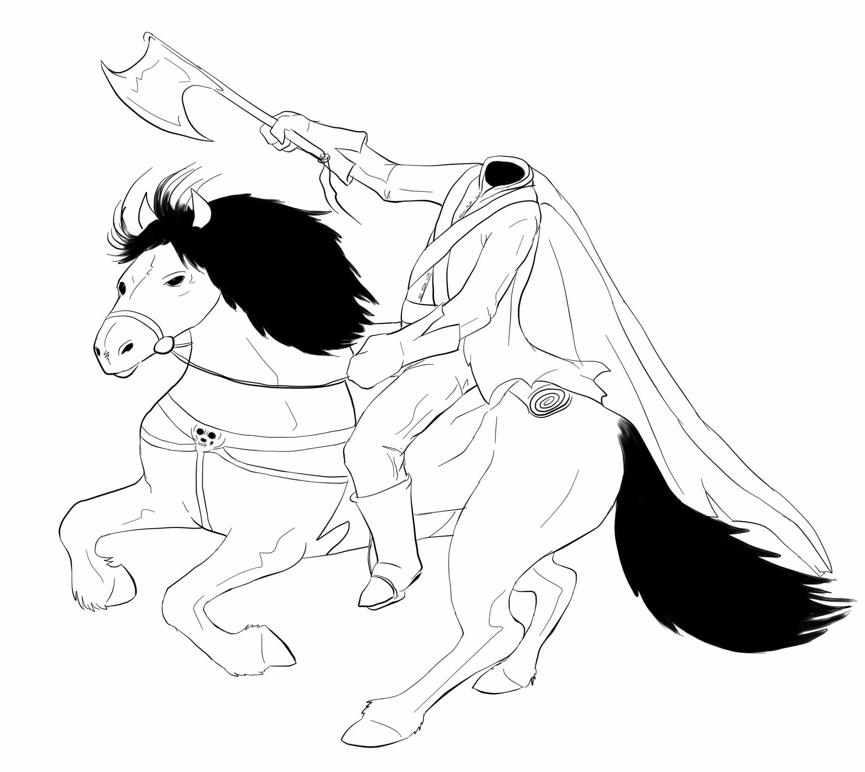 Pues a mí me gusta el color rojizo que le has dado a la tierra, quizá si le hubieras dados tonos similares al fondo de atrás tendría otra atmósfera. Me gusta la iluminación del caballo. El tema se Slepy Hollow ha dado para rato. Fue una buena elección No conozco el SAI, pero si quieres un buen programa free para coloreado el Krita. Se sale.