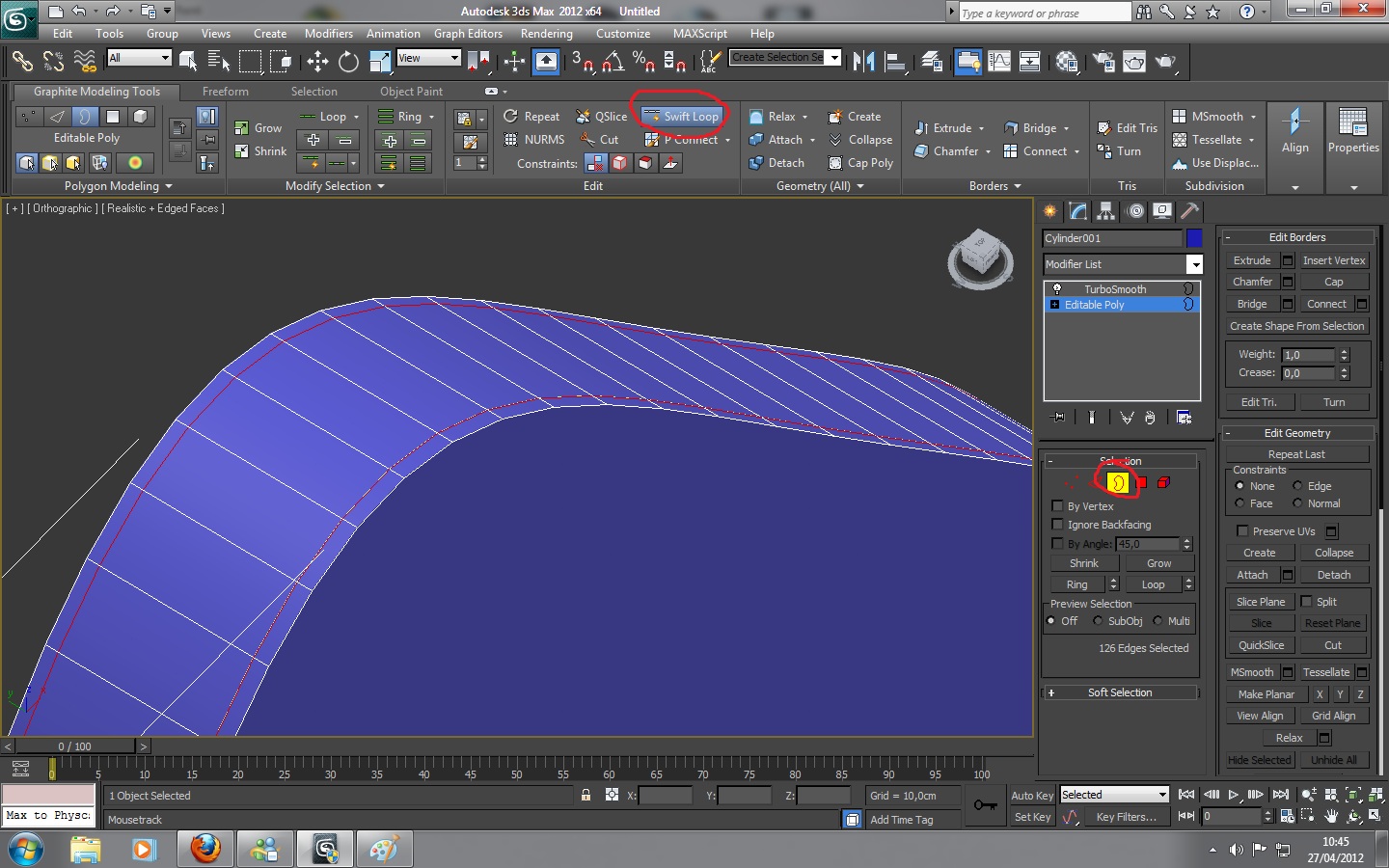 Aun así, tu problema es que te falta aplicar durezas al modelado para que el TurboSmooth respete más las formas, y eso se hace aplicando las Swift loops en los bordes. Te adjunto una imagen para que lo veas mejor.