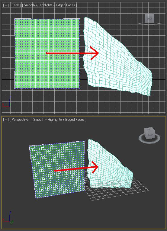 Con un Morph. Creas tu plano, creas una copia, deformas esta copia (sin añadir polys o quitar) como te de la gana. Seleccionas el primero, le añades un modificador Morph, en Morph le das a add Morph, seleccione tu segundo, y animando el tanto por ciento, tu plano pasa de una posición a otra.