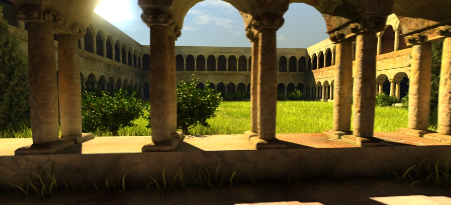 Modelado con max8 y renderizado con Vray con el irradiance horneado con cuasi Montecarlo. Las plantas y césped están hechas con Shag:Hair y convertidos a proxy.