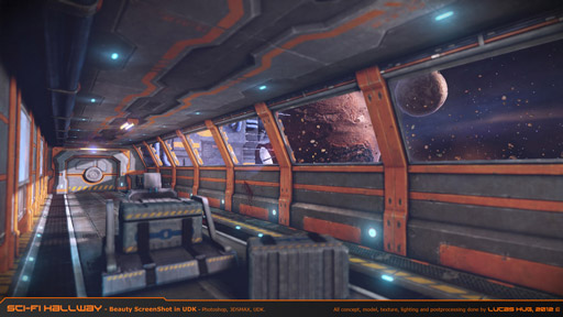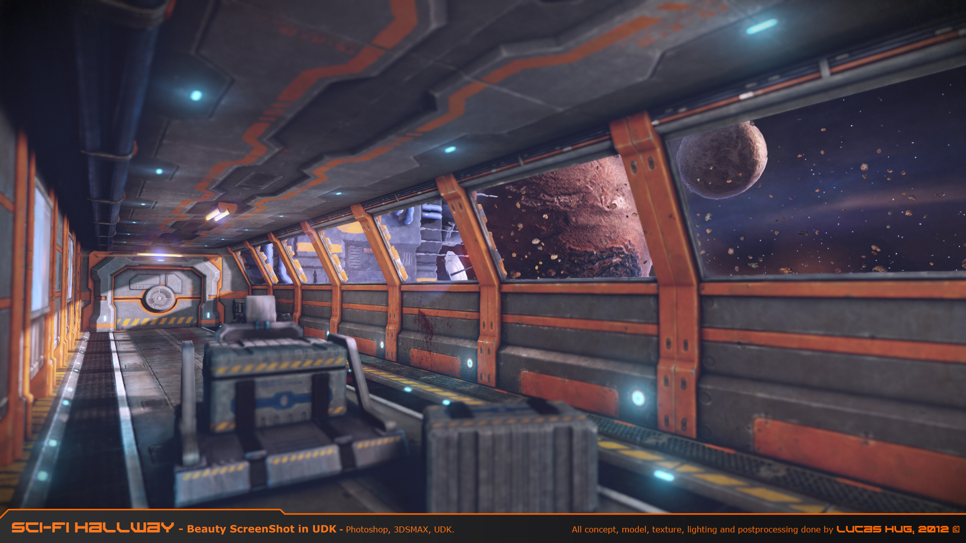Me gustan los Shaders, algo más de variedad estaría bien como retirar un trozo de pared y dejarlo a un lado y ver algo en el interior, los Shaders de las consolas y todo eso muy chulos, en uno de los carteles de electricidad eché en falta un constan Clamp para que no suba tanto de brillo. La chispa está muy bien, la luz que le has puesto es muy acertada, no se nota mucho y eso para mí es bueno, la postproducción muy buena de lo mejor, igual que la composición y el color.