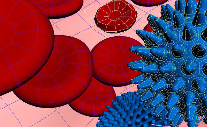 Un test, el otro vi en la tele unos glóbulos que salían con mucha translucencia, así que, una prueba con transparency y translucency. No queda cómo me gustaría.