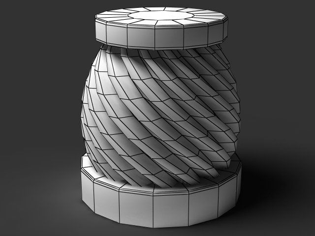 Bueno, un cilindro con twist crea los polígonos planos, y necesito que sean redondeador hacia fuera, y cada polígono con un bevel no me termina de convencer, esta parece una de esas situaciones donde hay una manera correcta, exacta y más fácil de hacerlo que ha mano. ¿ideas?