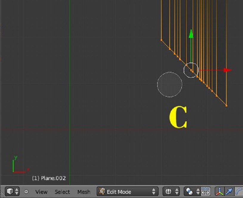 Para el otro lado, sería lo mismo. Primero seleccionamos los vértices a extrudir (letra c sale un círculo, con el que podemos seleccionar fácilmente los vértices):