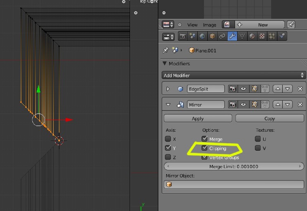 Si presionamos la casilla clipping y nos ponemos en Edit Mode, ya podemos seleccionar los vértices y moverlos en coordenada y.
