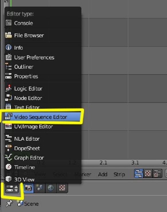 Lo que voy a intentar hacer con el editor, es crear una animación de una serie de imágenes y grabarlas en un video, y si puedo, con música, lo primero que vamos a hacer, es abrir el video sequence editor: