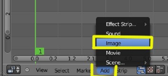 Si ahora, por ejemplo, queremos poner una imagen y que su duración en pantalla sea de 3 segundos, tendríamos que calcular 24*3 o sea, 72 frames, que serían tres segundos, bueno, ahora que ya sabemos más o menos cómo se visualizan los segundos o frames, vamos a poner imágenes. Se trata de poner unas cuantas imágenes, una detrás de otra, ajustando los tiempos deseados, para añadir la primera, presionamos add > image:
