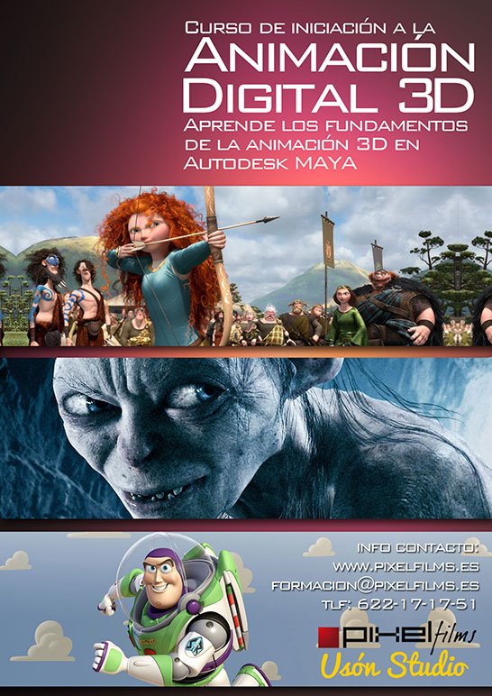 Para la gente que esté cerca de a Coruña, quizás hay alguien al que le pueda interesar este curso de iniciación a la animación 3d: http://pixelfilms.es/cursos/animación-dixital/.