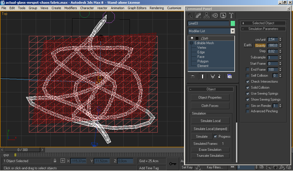 La tela es un plane con subdivisión tipo delunay se solucionó con Cloth modifier en solución local.