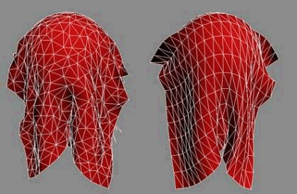 La subdivisión de tipo delunay, que es de triángulos en lugar de ser polígonos cuadrados bipartitos, es más adecuada para resolver telas pues es isotrópica (se deforma igual en todas las direcciones).