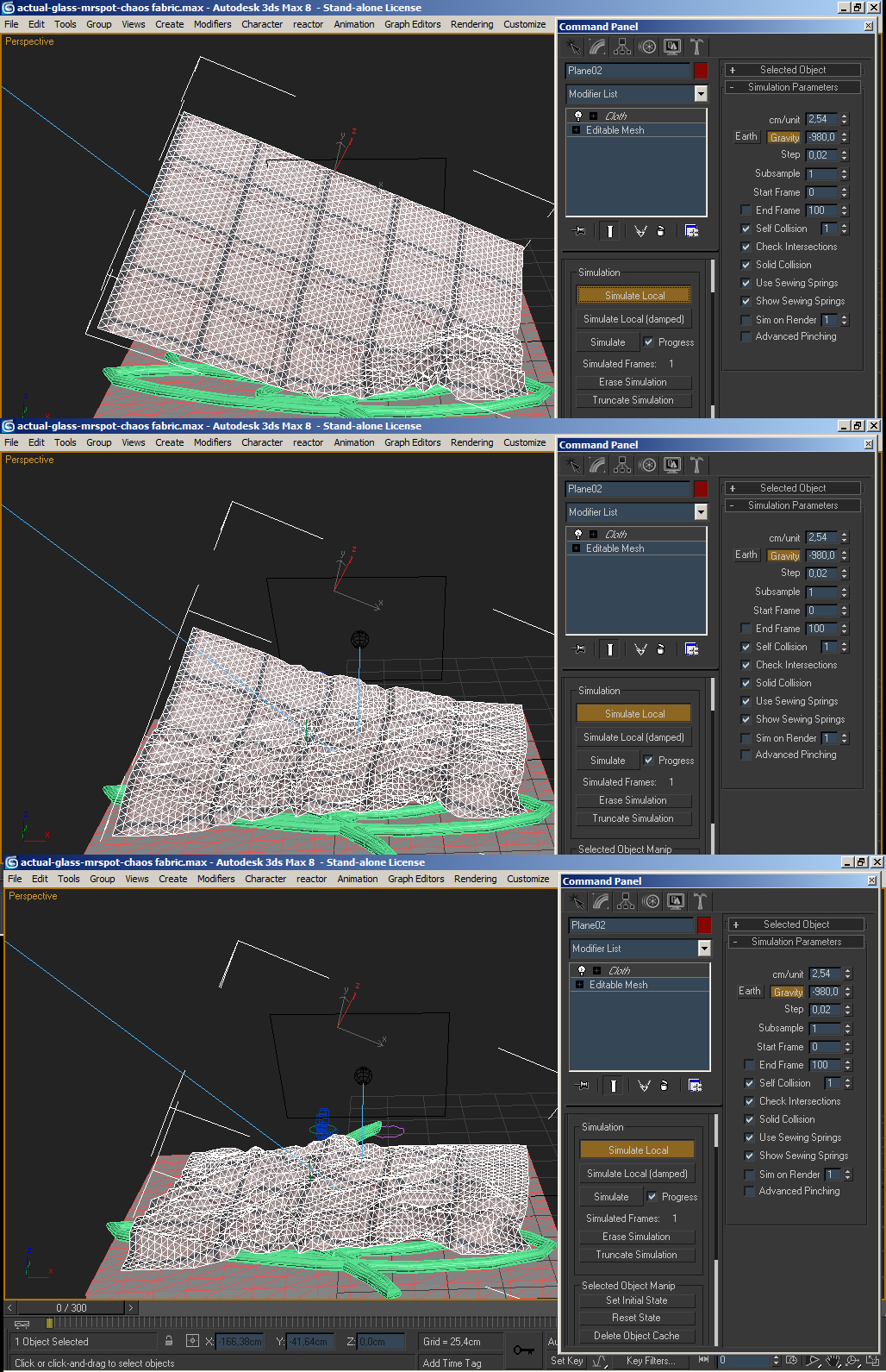 Se realiza el simulate local hasta que la tela cae y se pliega sobre el cordón.
