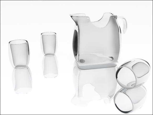 Bueno, cambiando un poco el estilo aquí hice unos vasos y una jarra, pero tengo el re problema con el material del vidrio, no entiendo =(, así me quedo alguien me tira tipss para arreglarlo. Gracias =(