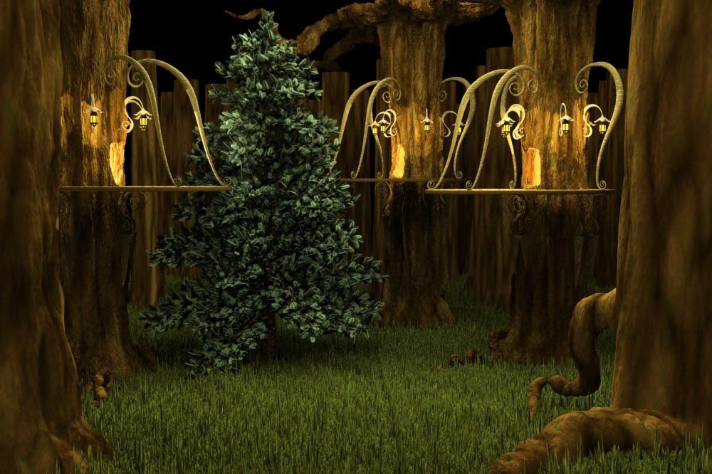 La escena va a estar centrada en un árbol de navidad en el que están trabajando diferentes criaturas del bosque.