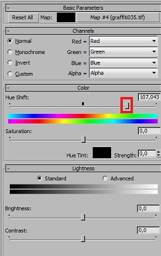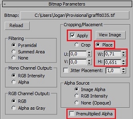 Hacemos un clic sobre el mapa del grafiti en el panel de layers. Se nos abrirá entre otras cosas este editor: bitmap parameters.