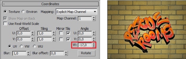 Para girar el bitmap, ve al apartado coordenadas que veras sobre el anterior: bitmap parameters, y desde el ajustable w podrás girarlo.