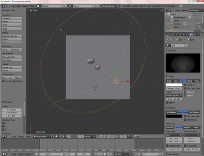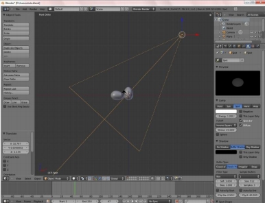 Primero vamos a darle luz a nuestra escena. Empezamos desactivando el Ambient Occlusion. Ambient Occlusion: es un método de sombreado utilizado en gráficos por ordenador 3d, muy útil para añadir realismo a nuestras escenas, shift+a y añadimos una Lamp de tipo spotspot Lamp: es una luz dirigida con un rango que podemos determinar y que produce sombras: