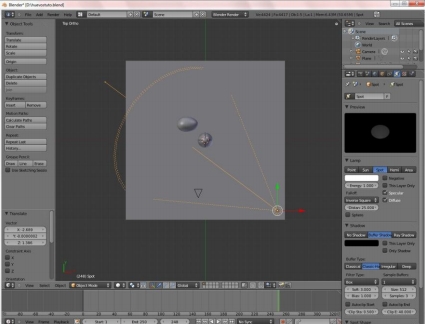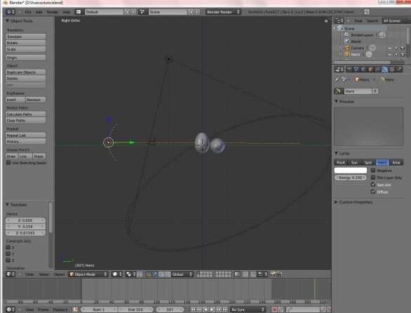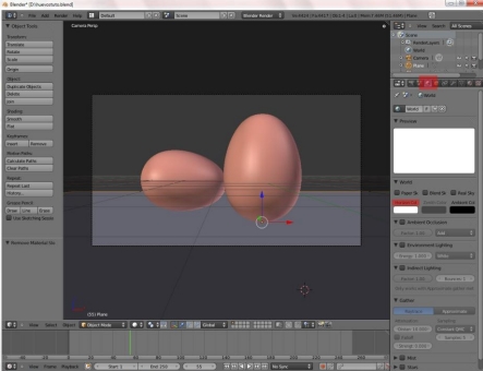 Ahora agregaremos otra luz shift+a Lamp de tipo Hemi y la ubicamos justo detrás de la cámara apuntando hacia los huevos además le disminuimos la energía a 0.150hemi: es una lámpara con un iluminación más global y no genera sombras: