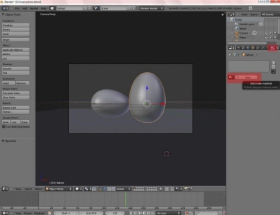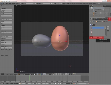 Aquí finalizamos la parte de luces ahora recuerden guardar constantemente su trabajo con Control +s esto es fundamental, vamos a darle color a nuestra escena, seleccionamos un huevo con el click derecho vamos a materiales y agregamos un material nuevo en el botón new: