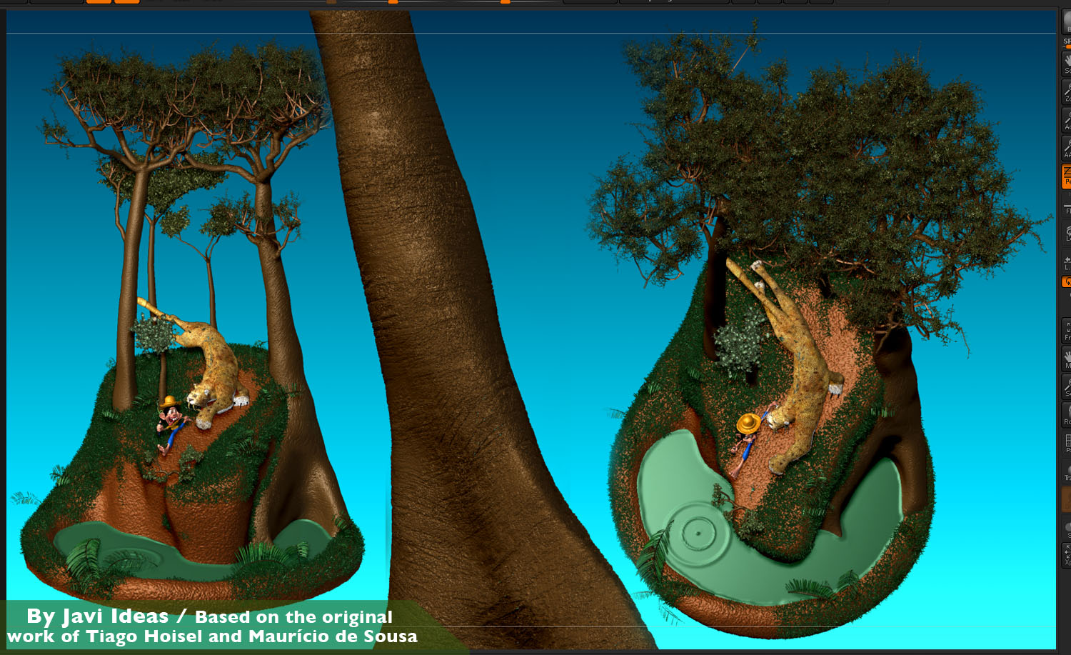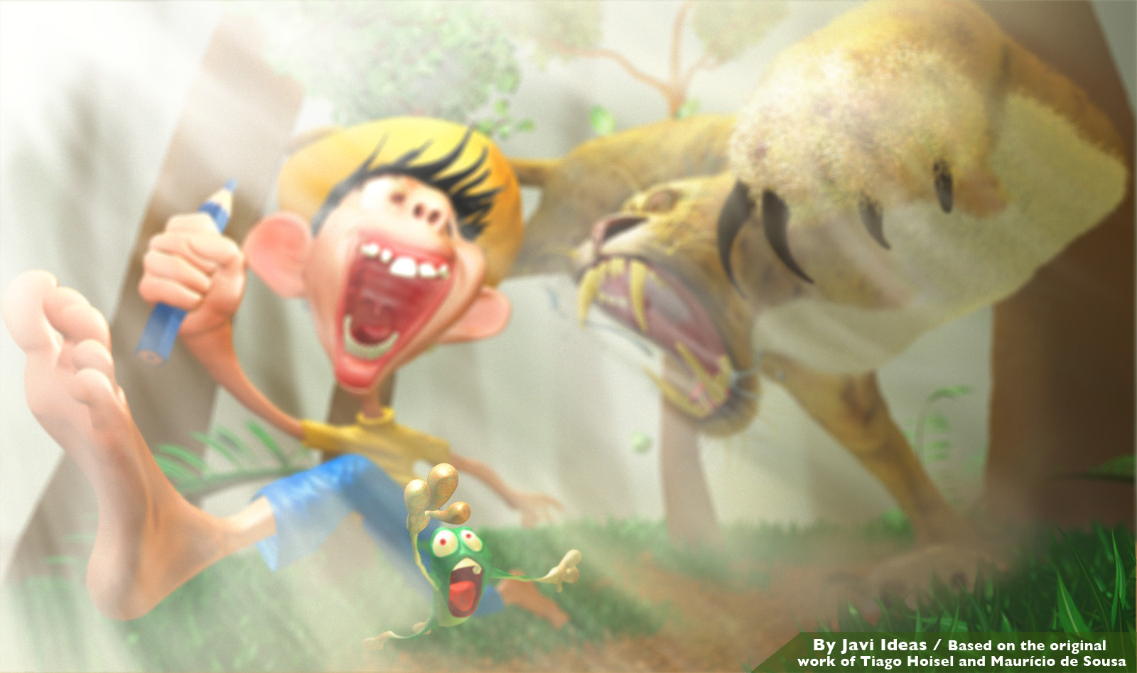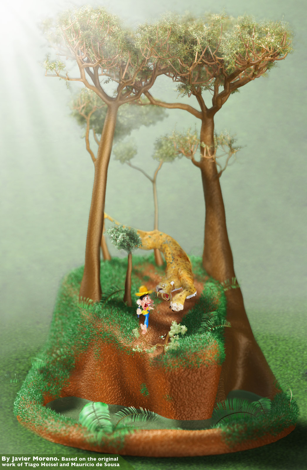 This is my personal 3d adaption of tiago hoisels chico bento illustration. You can se the original work by him in his cgsociety portfolio or in his blogspot site hope he likes it, y really enjoyed doing this and i learned a lot.