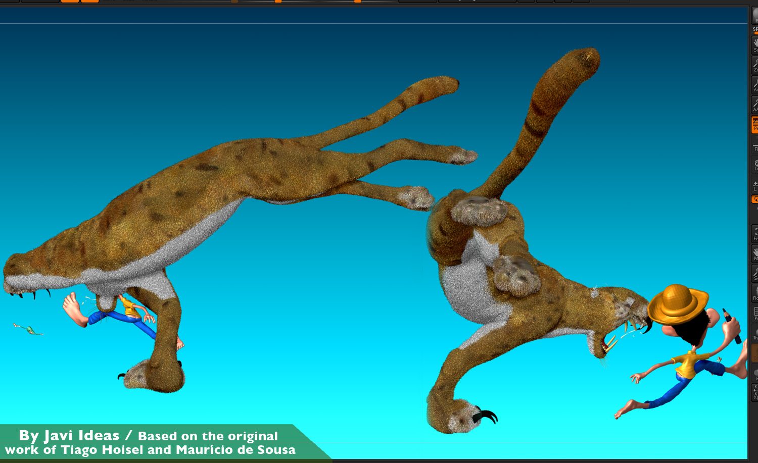 Tremendo curro. Te ha quedado genial, una imagen muy buena. Lo único que no me termina de convencer tal vez sea el pelo del bicho, que parece demasiado rígido, como paja. Pero lo dicho, el trabajo brutal.