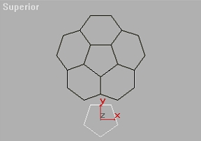57. Ahora, copie el nuevo hexágono 4 veces en los lugares que le correspondan usando el ajuste vértice. Luego rótelos 72 grados sobre el eje Z. El resultado deberá de ser muy similar al de la imagen.