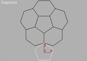 24. Ahora nosotros tenemos que copiar y rotar estas dos piezas para formar la pelota. Para ello, necesitamos ajustar el punto de pivote del hexágono.