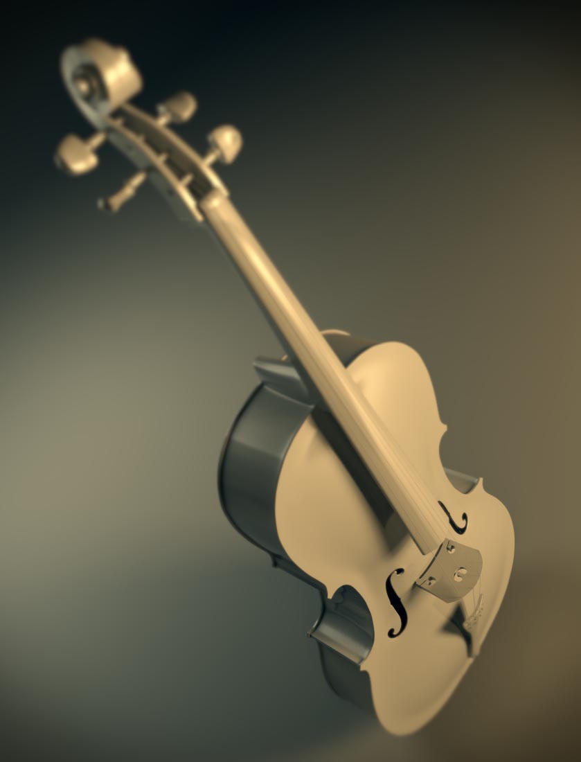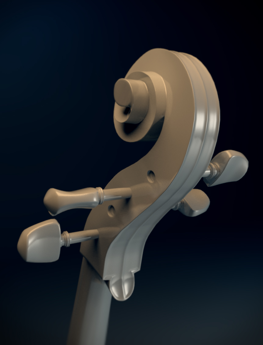 Muy buen modelo. Pero lo hubieras colocado en trabajo en proceso. La textura de un instrumento musical es lo que le da la vida, así canta mucho que es un modelo 3d. Las cuerdas apenas se ven. Y te falto el arco del instrumento.