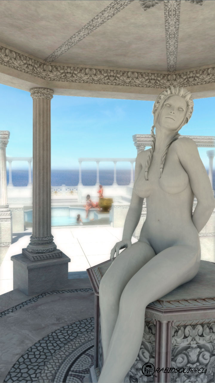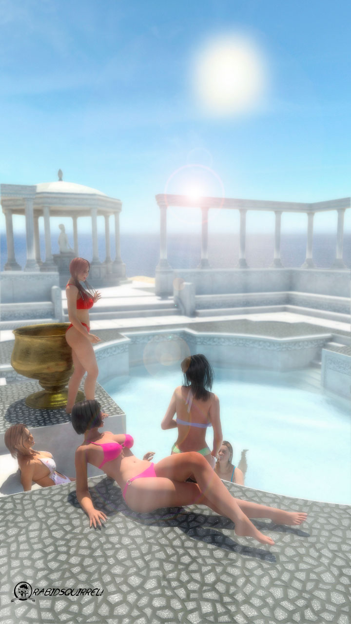 Como dice el título, solo es una escena que hice mientras pensaba que hacer para la próxima, aunque sí le trabajé el Shader de agua de Mental Ray para que se viera hacia adentro twiqueandole los valores de refracción.