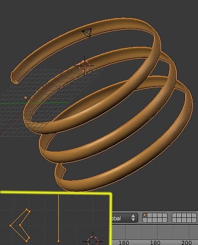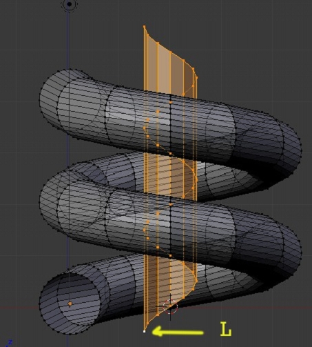 La posición del cursor será el centro sobre el que giren los vértices, los steps, son las partes que conforman un giro, por lo que a más cantidad, más calidad, los turns son las veces que se realizara. Si el muelle tiene que tener 8 vueltas, pues le colocomas 8 en turns.