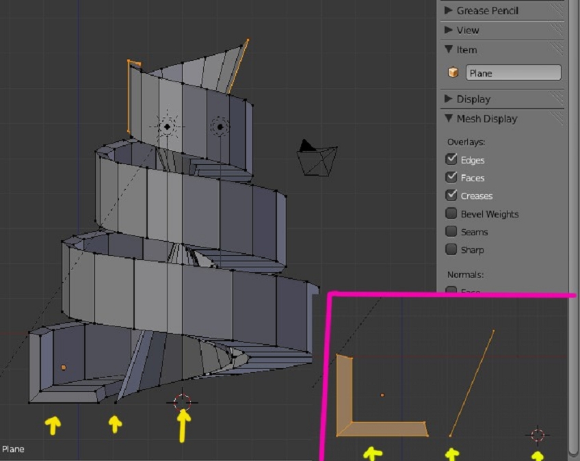 Y estando en Edit Mode añadimos un plano también (add > Mesh > plane), al cual le borramos dos de los vértices para dejar unasimple línea.