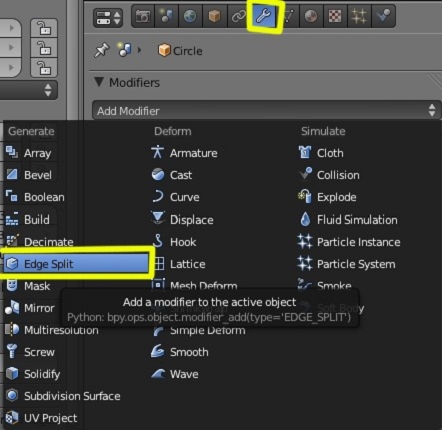 Nos vamos a modifiers y seleccionamos Edge Split.