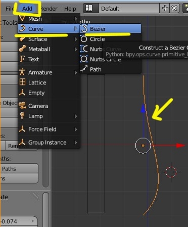 Para añadir la curve vamos a add > curve > Bézier. Se puede poner también un círculo si lo que queremos es hacer eso.