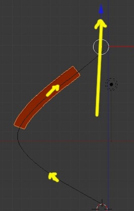 En este caso se trataría de arrastrar el manipulador (las flechas de colores) en el sentido del eje Z (según vista y coordenadas puede ser otro, claro) y el objeto subiría hacia arriba, pero tomando la curva del objeto y deformandose.