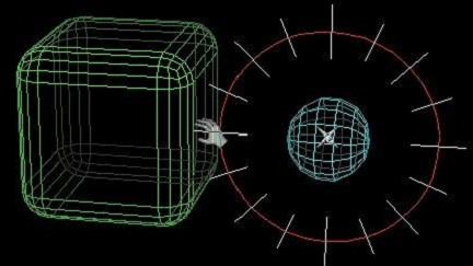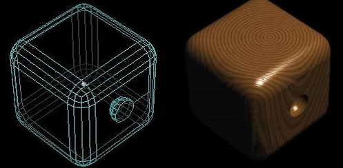 Select the sphere, choose the punch tool, click on the Cube. Use the + and - Keys todo display successively the diferent combinations between the two intersected objects. Press.