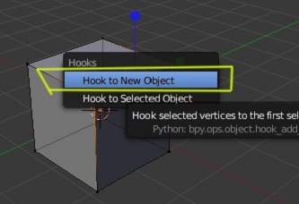 El hok (garfio) es como un Empty asociado a uno o varios vértices. Lo que se consigue con esto, que al mover el garfio se muevan esos vértices, una prueba muy sencilla que podemos hacer, es moviendo los lados de un cubo, creamos una escena con un cubo y vamos a seleccionar dos vértices de un mismo lado.