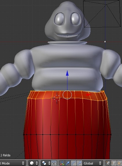 Como modelar sobre otro objeto es bastante difícil, con esto lo que vamos a conseguir es que el modelo de la falda, se ajuste al otro objeto. Pero más concretamente, en este caso solo quiero que se ajuste la parte de la cintura, por lo que primero voy a crear un grupo de vértices con la selección de solo la cintura.
