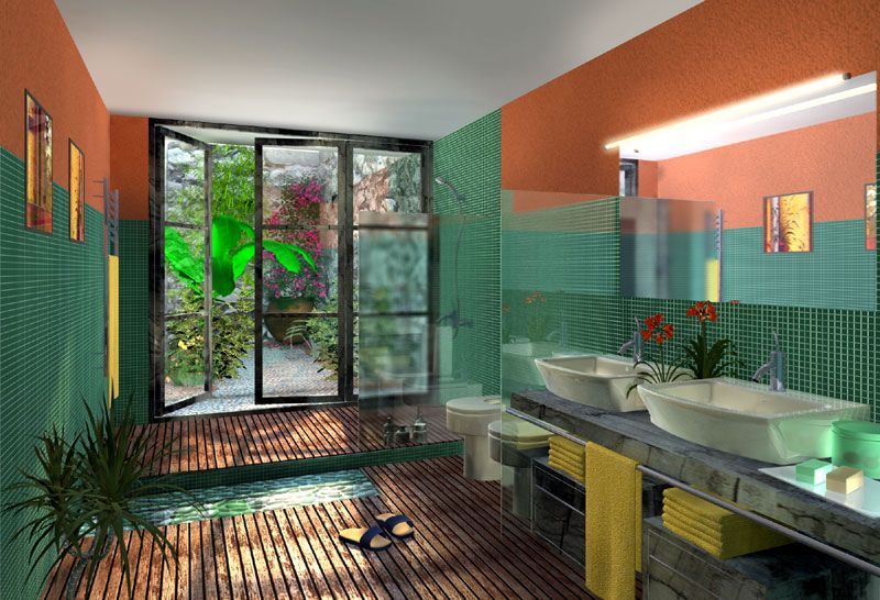 La verdad es que la combinación de gresite verde y el color de la pared además de los diseños duros de los sanitarios resultan un poco extraños para un clasicón como yo.