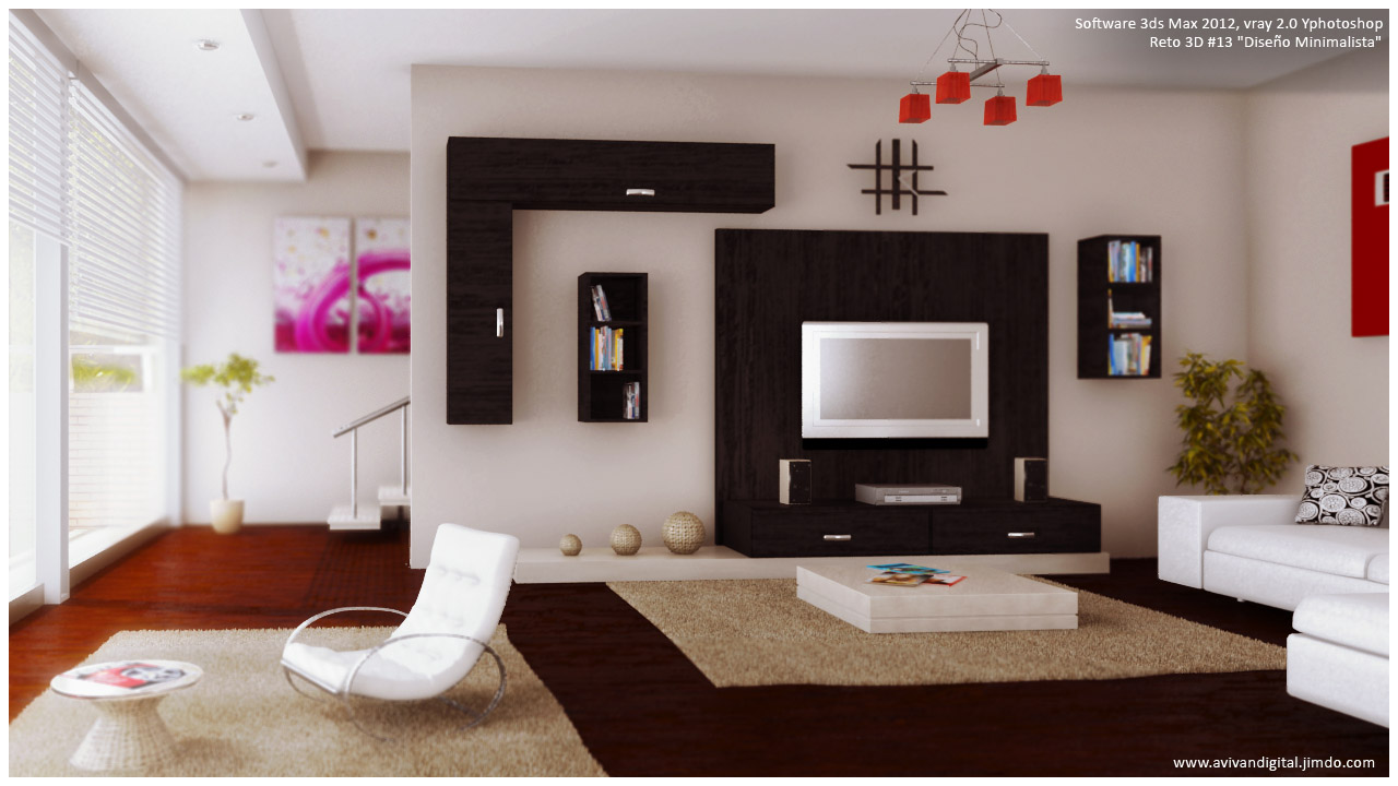 Hola gente, aquí presento mi último trabajo, se trata de un salón minimalista, realizado con 3ds Max 2012, Vray 2.0 y Adobe Photoshop para un reto en face book. Saludos.