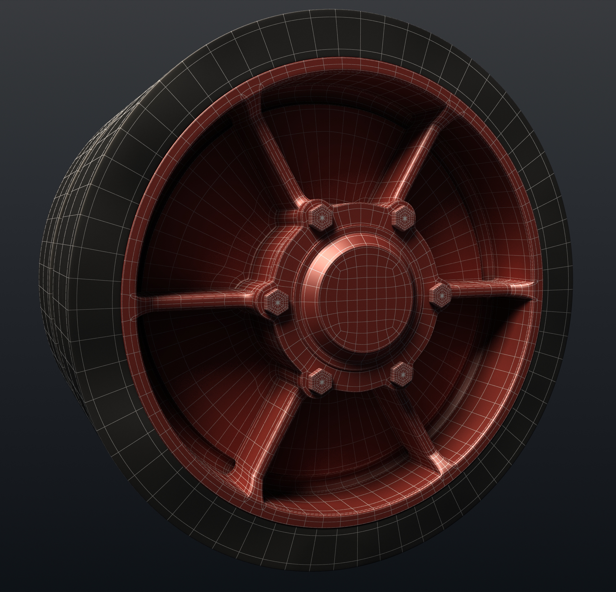 Yo los hago de varias maneras, pero últimamente los Unwrapeo en tres zonas distintas, la banda de las ruedas, la parte externa o banda exterior y los laterales. Pero si le metes también un buen Noise con pinta de oxidado y algo de bump, no te creas que te iba a quedar muy mal, pero ya qué se mapea.