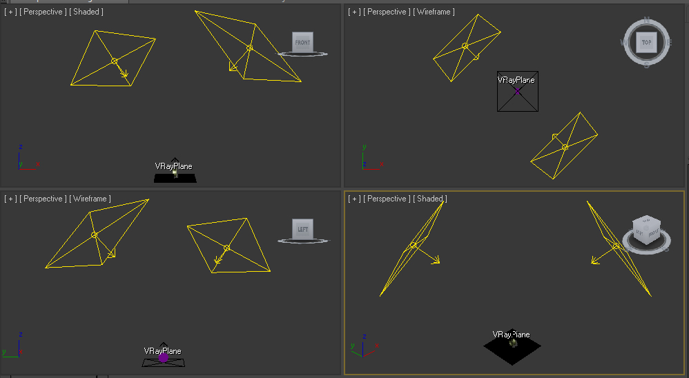 Ahora llego el momento de colocar las luces y el suelo, las luces son dos Vray light con 10 de multiplier y una de un color medio naranja y la otra azulada.
