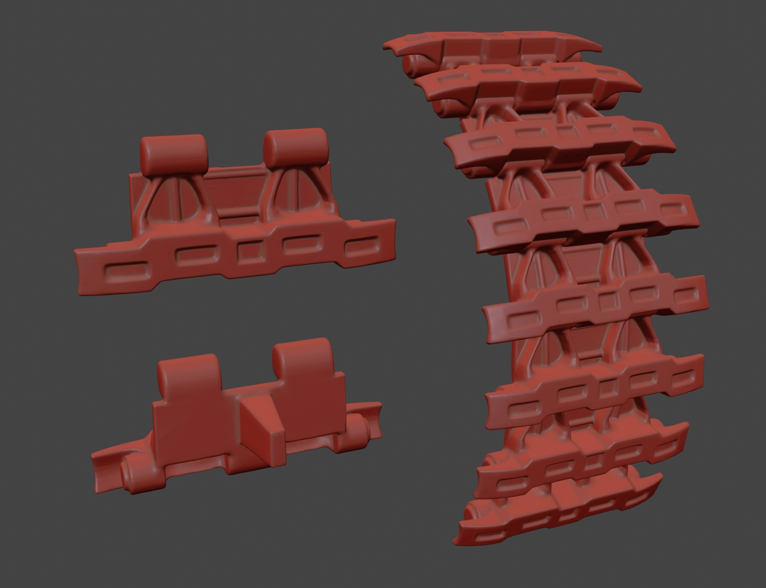 Al fin acabe con la retopología de los eslabones, y he empezado a colocarlos en su lugar.