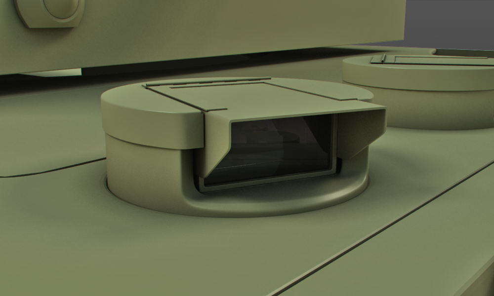 Para qué veáis que soy bueno voy a compartir un truco que acabo de descubrir fruto de trastear con los materiales para qué los visores se vean bien. A parte de lo obvio aplicar un material de tipo cristal sobre lo que se supone que es cristal, hay que pensar cómo físicamente está formado un periscopio. Normalmente en su interior lleva o bien prismas o un juego de espejos (depende de para lo que sirva), con esto quiero decir que desde el exterior aparte de reflejar el entorno también se refleja lo que hay en su interior, por ende hay un flujo de luz que en nuestros modelos no existe porque simplemente le hacemos un hueco y le colocamos el cristal. Otras veces ni eso.
