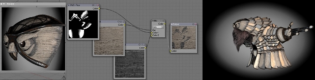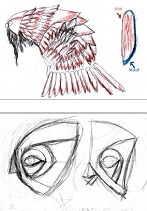 I made the armor in an OWL shape because the OWL is a symbol of knowledge and a crea-ture of the night at the same time. He a los has no lower jaw. This is a Little allusion todo zoom-bies and the fact that he is undead. For his lower jaw, he got the long Wild beard that reminds that he has ben a human Many yeas ago.