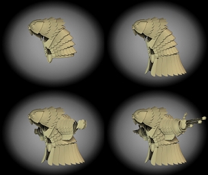 To translate the ideas of kaldewei into a model, y created a very coarse model of kaldewei body. It didnt have any de-tails, just the form of his proportions. Now i am able todo build the armor.
