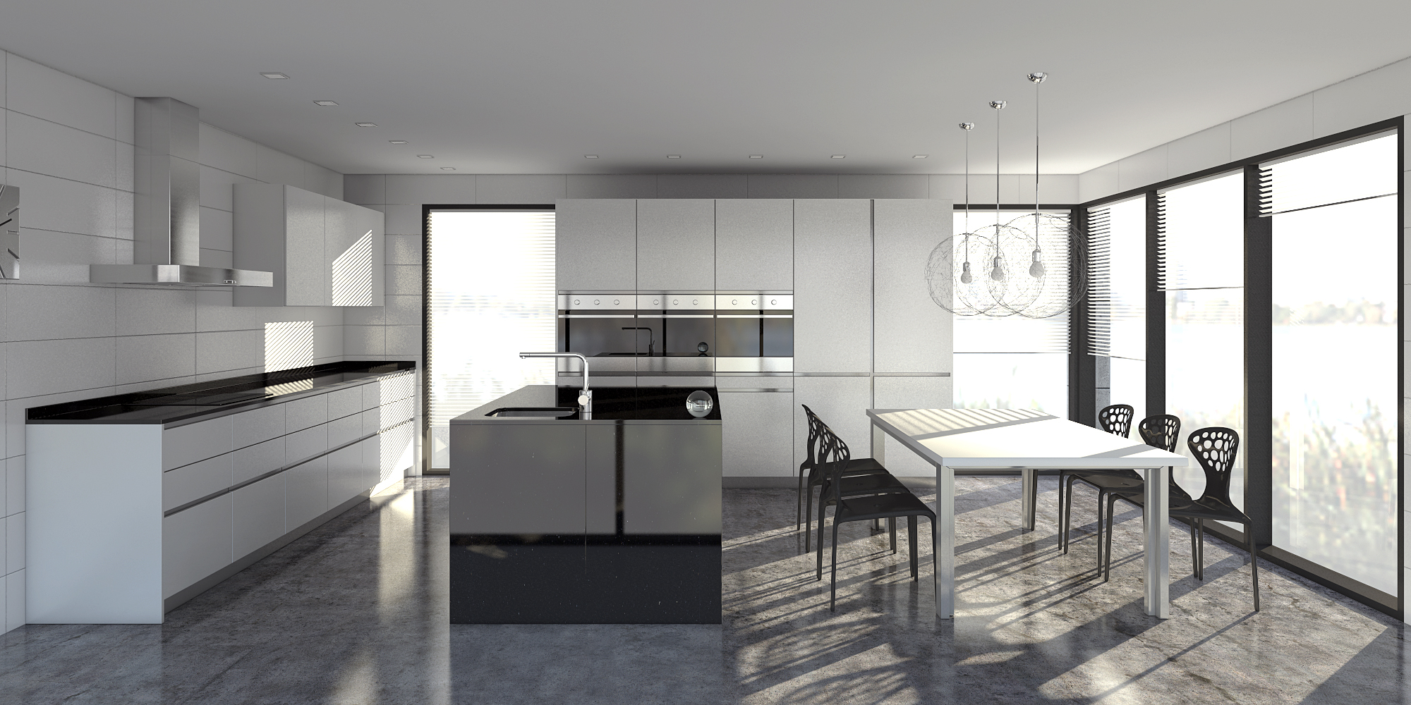 Después yendo a las críticas, (es cuestión de gustos) pero la cocina tiene un estilo moderno y el color madera de la alacena (ajusta el mapping) no tiene mucho que ver con la modernidad (repito según gustos) ahí me parece que están mejor lo del 1°. En cuanto a diseño corregiría el bajo mezada, tiene un zócalo de unos 10 centímetros y de costado esta tapado, no creo que haga falta taparlo. La mezada la haría que vuele 1 o 2 cm. Con respecto a los azulejos yo haría al más cuadrado o en rombo quedaría bien también, pero hechos rectangulares queda igual que la mesada y de un pantallazo es todo rectangular. En cuanto a los objetos, esta algo vacío, esta bueno, pero le haría bien un par de cosas, no muchas, más que nada en la mesada de la cocina y algo en la mesa. Fíjate que las lámparas que están sobre la mesa tal vez algo más chico o en vez de 3 dejar 2 y fíjate que hay un problema que no tienen sombra, precen que están en el aire sobre el techo, y por último, es verdad que hacer el fuera de escena es un bajón y alentiza mucho el trabajo y hasta hay que tener máquina para hacerlo, pero sobre las ventanas hay demasiada luz, la escena está bien, pero en las ventanas esta algo saturado.