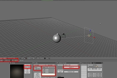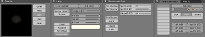 Next place the default Lamp on the position shown in the two pictures in relation todo where your Camera is, then press f5 un-til you get todo the Lamp buttons panel and do some adjustments as shown in the picture, when you click on the Area button your Lamp Will transform into a diferent form and Will a los get a dotted line coming out of it, it impor-tant for this line todo penetrate the ball as shown in the picture so rotate it until it does.